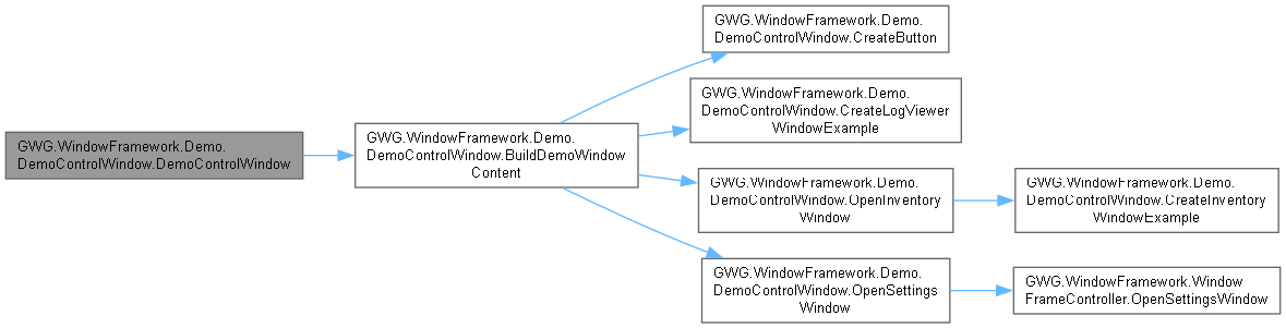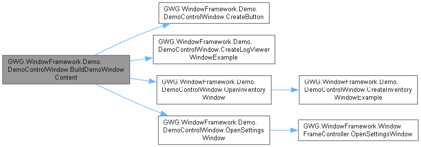 | | Builds the content for the demo control window. Includes a description label, buttons for opening example windows, and a footer with additional controls.
